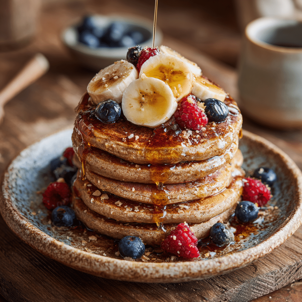 Quick, fluffy, and naturally sweet pancakes made with ripe bananas and spelt flour. Vegan, healthy, and ready in just 5 minutes.