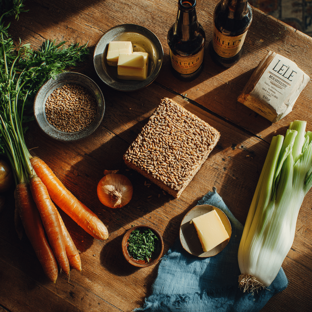 A comforting, pub-style soup made with nutty spelt, creamy cheese, and a splash of ale for depth. Rich, hearty, and ready in under an hour.