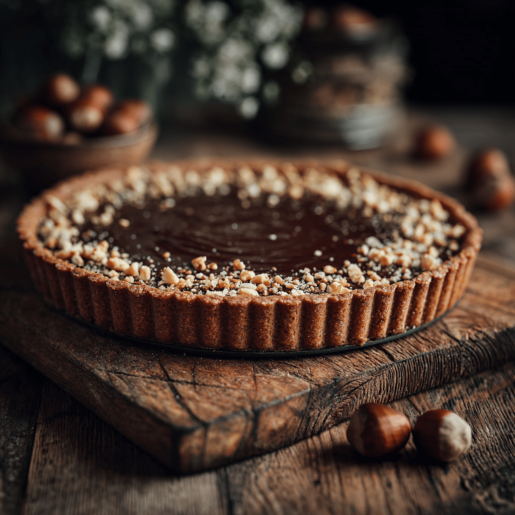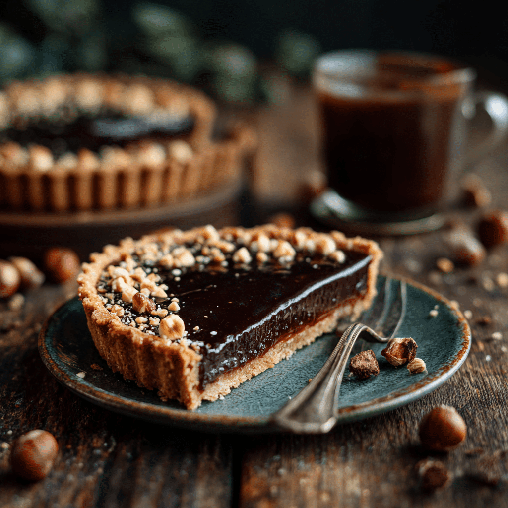 A rich, smooth espresso tart with a spelt flour crust and roasted hazelnuts. Naturally dairy-free, full of nutty flavour, and perfect for a sophisticated dessert.