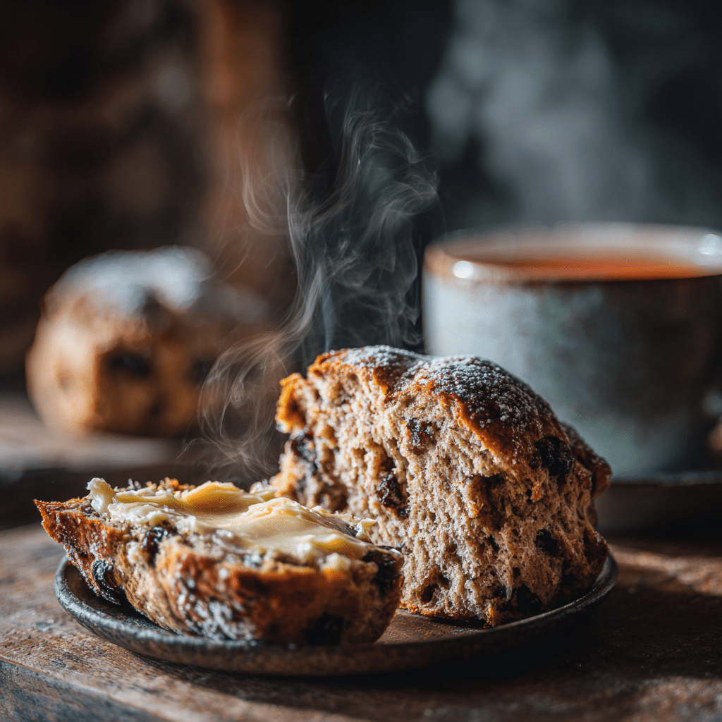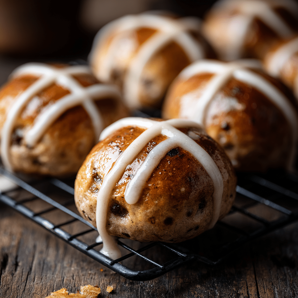 Soft, spiced, and slightly nutty Easter buns made with spelt flour, dried fruit, and warm spices. A lighter, wholesome twist on the classic hot cross bun.